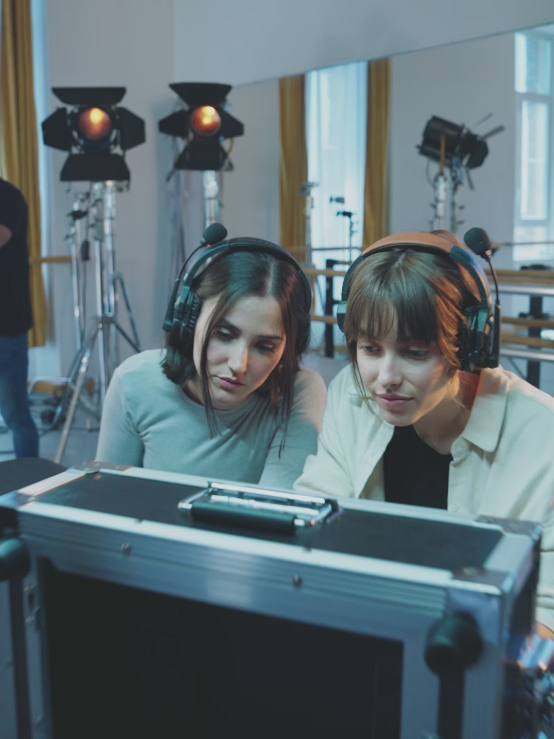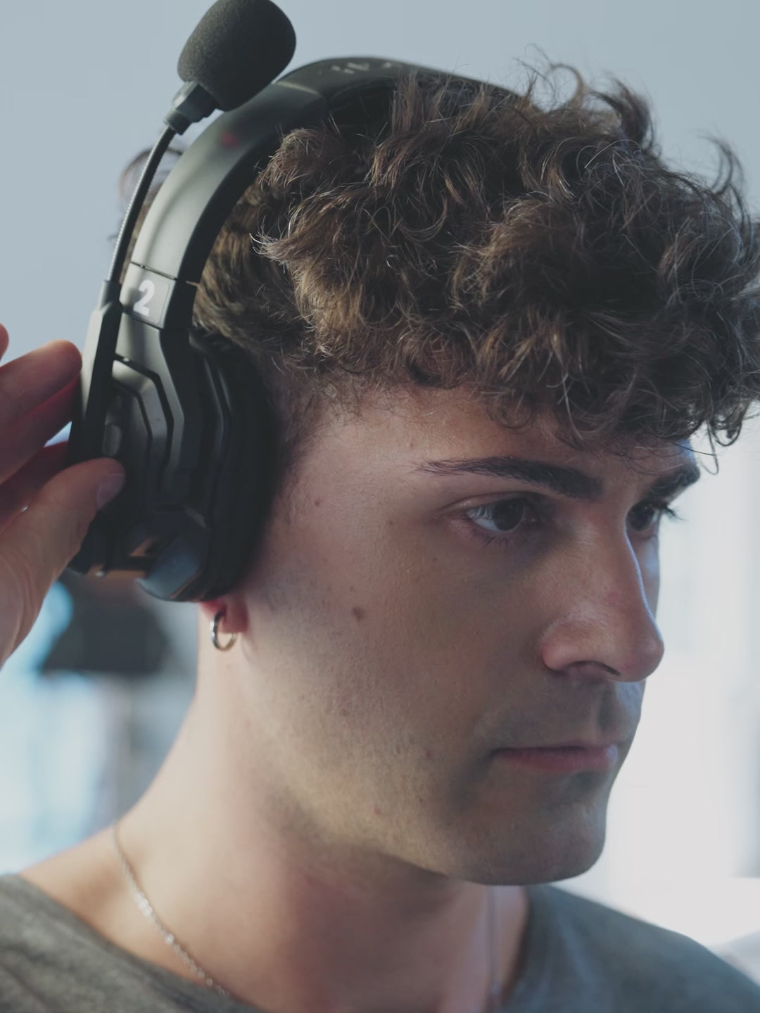 - There are two mute options: the MUTE button and muting by flipping up the microphone boom. The MUTE button supports the PTT mode.